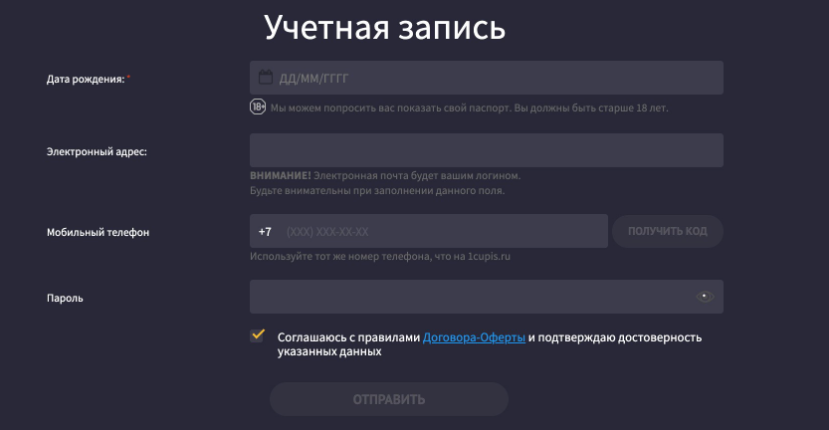 Yalnız qeydiyyatdan keçmiş istifadəçilər mərc edə, pul kisəsini doldura və pul çıxara bilər. Qeydiyyat ənənəvi olaraq 3 mərhələdə baş verir: veb-saytda bir forma doldurmaq, yoxlama və TsUPIS hesabına qoşulmaq.